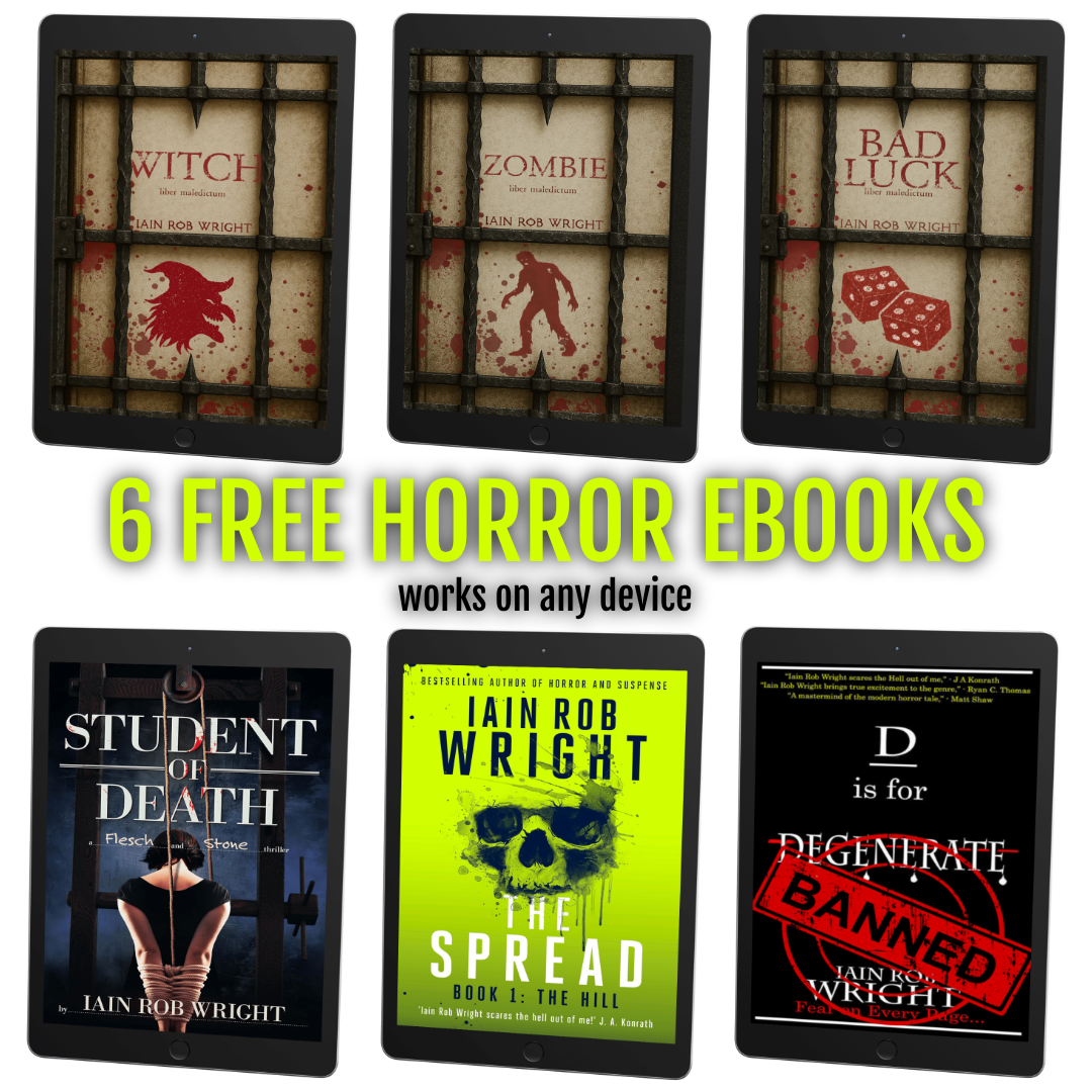 As a way to find new readers, Iain Rob Wright is giving away 6 of his *books absolutely FREE. To get yours, all you need to do is tell him where to send them!